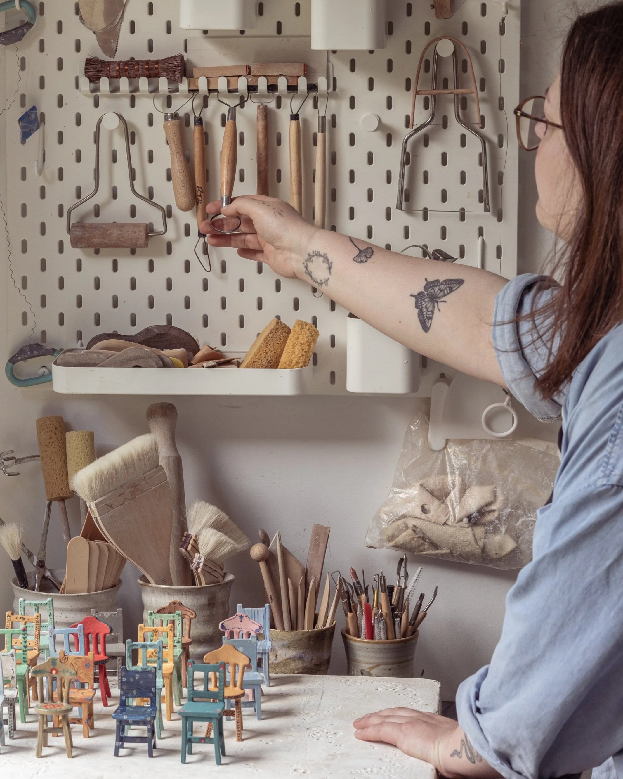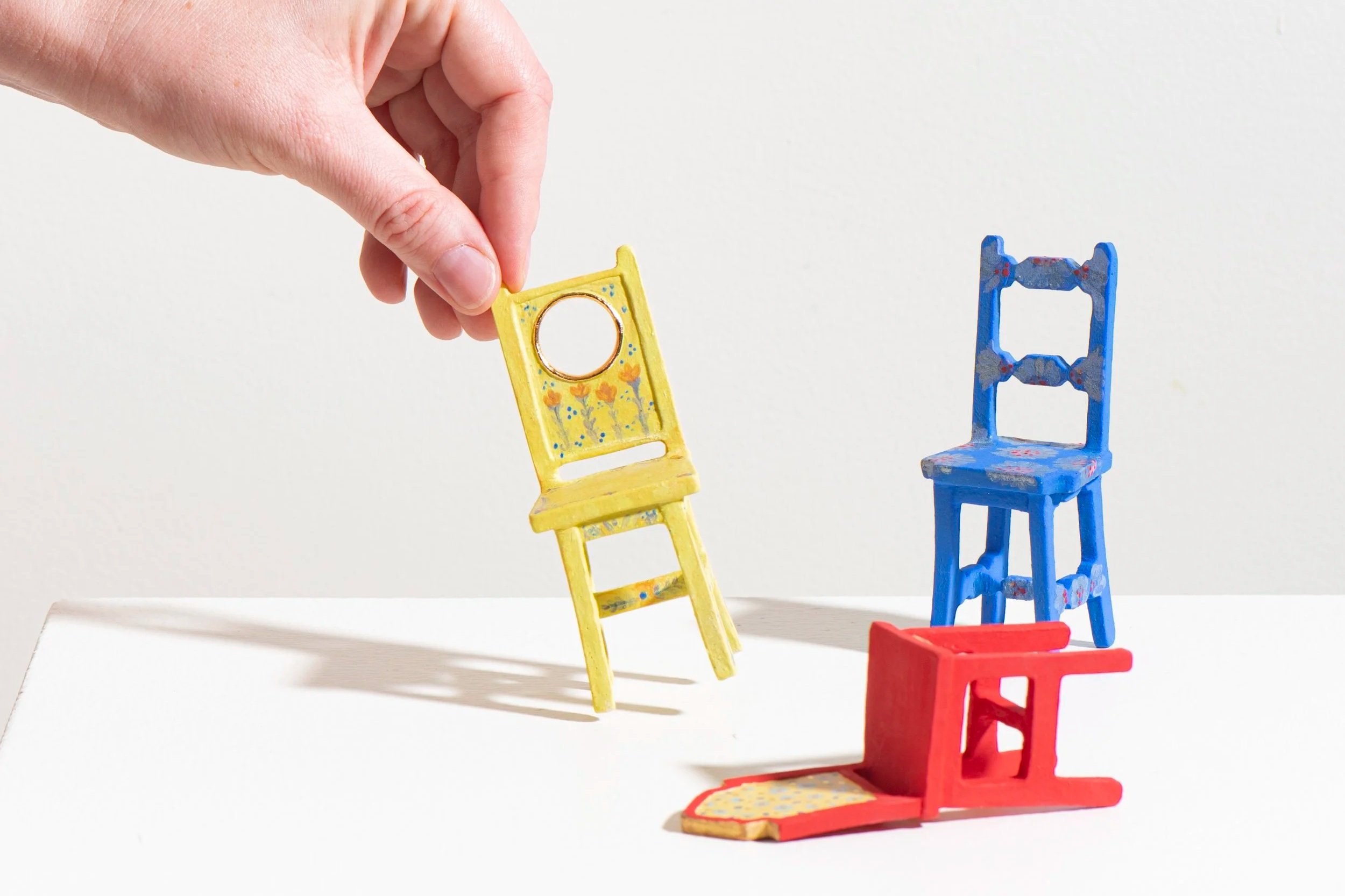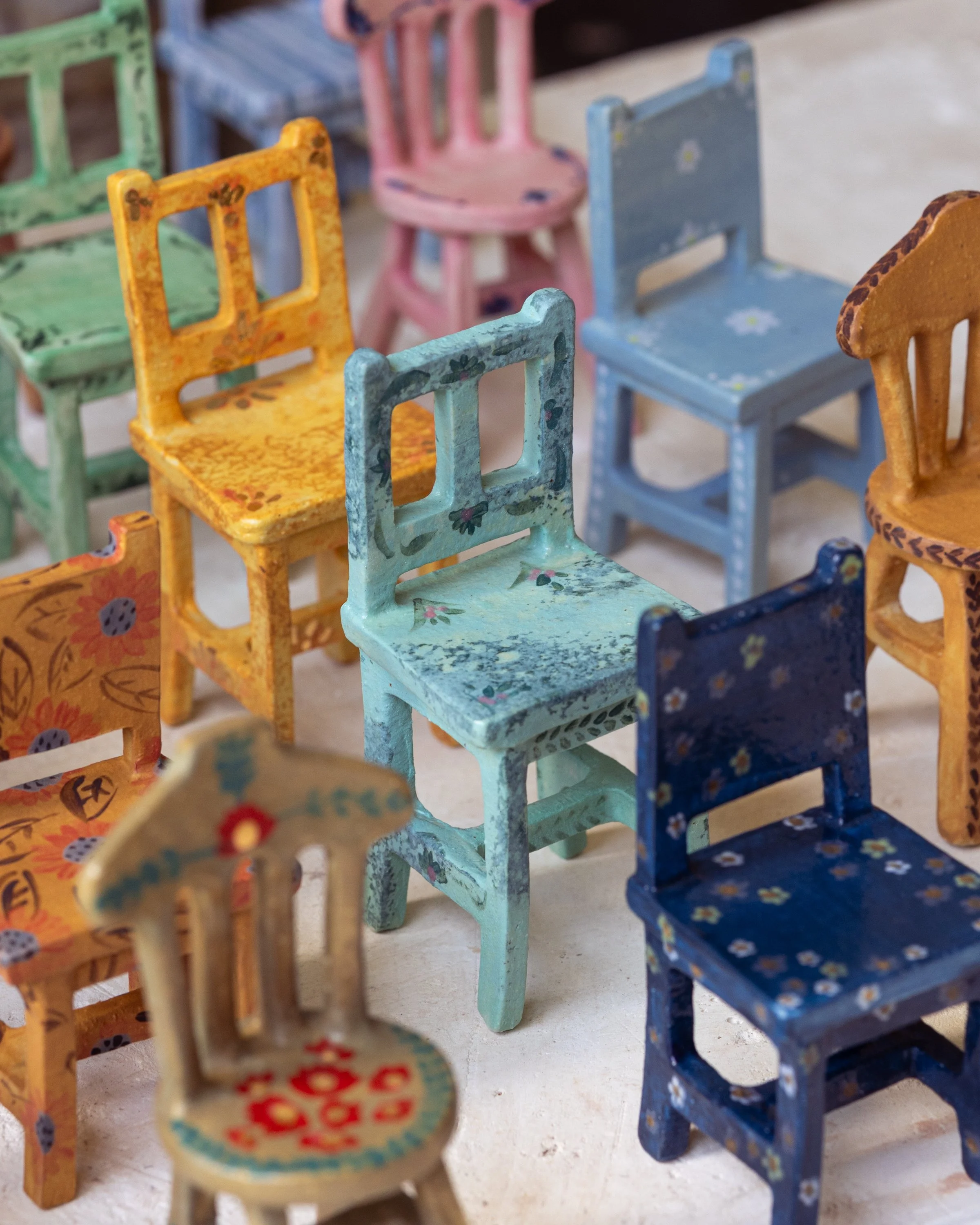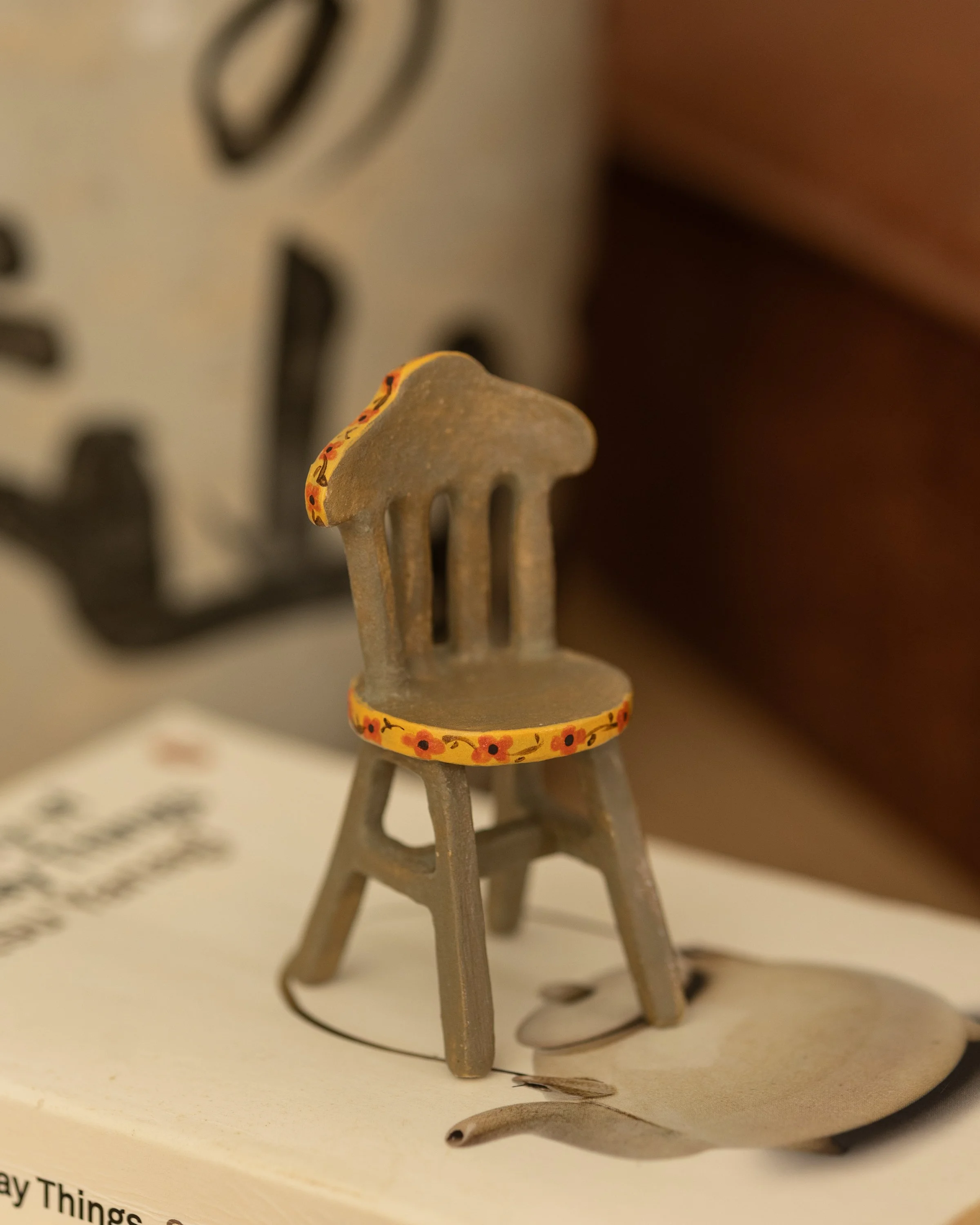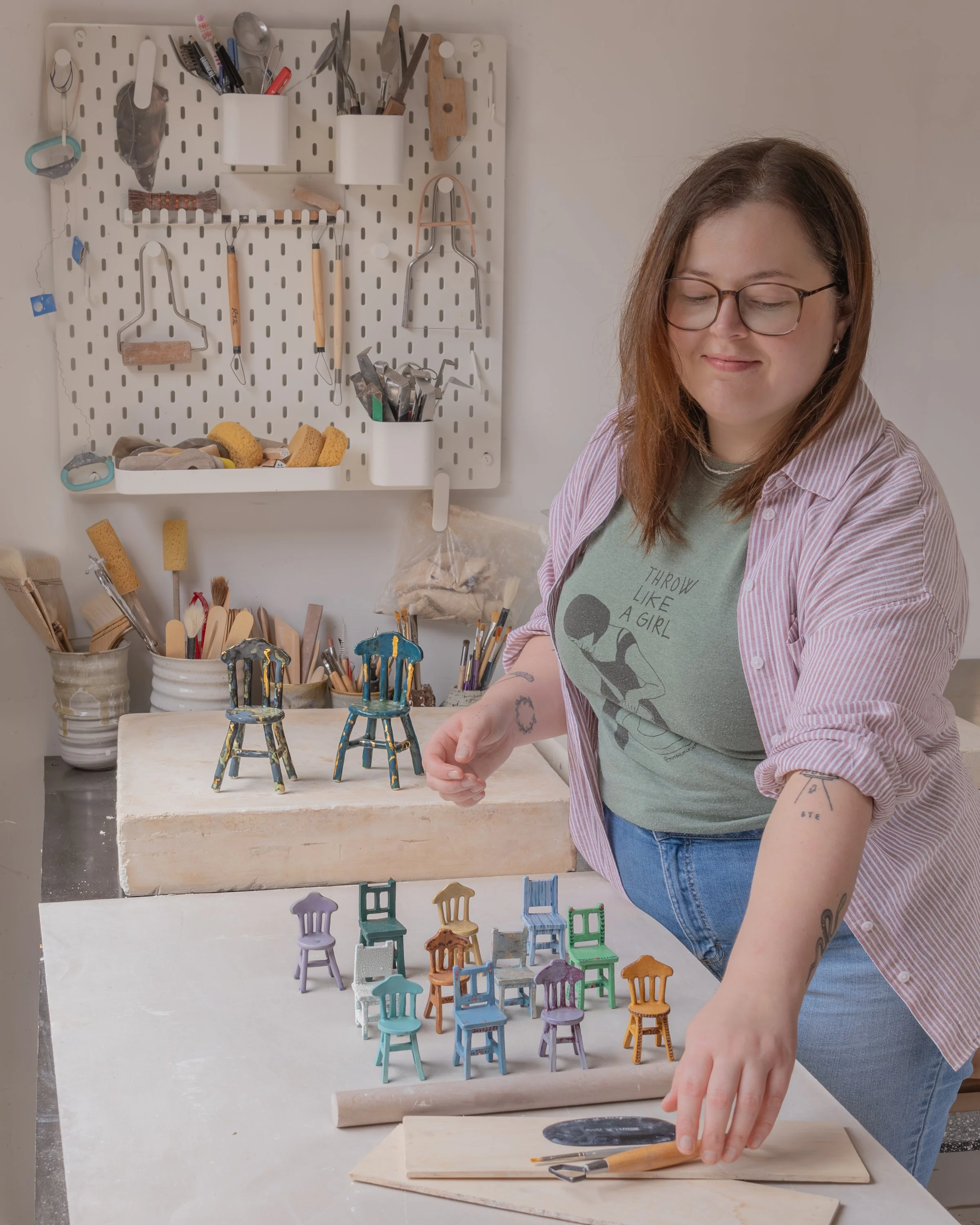 Geelong based ceramic artist Emily Brookfield creates miniature ceramic chair sculptures that invite curiosity and nostalgia.