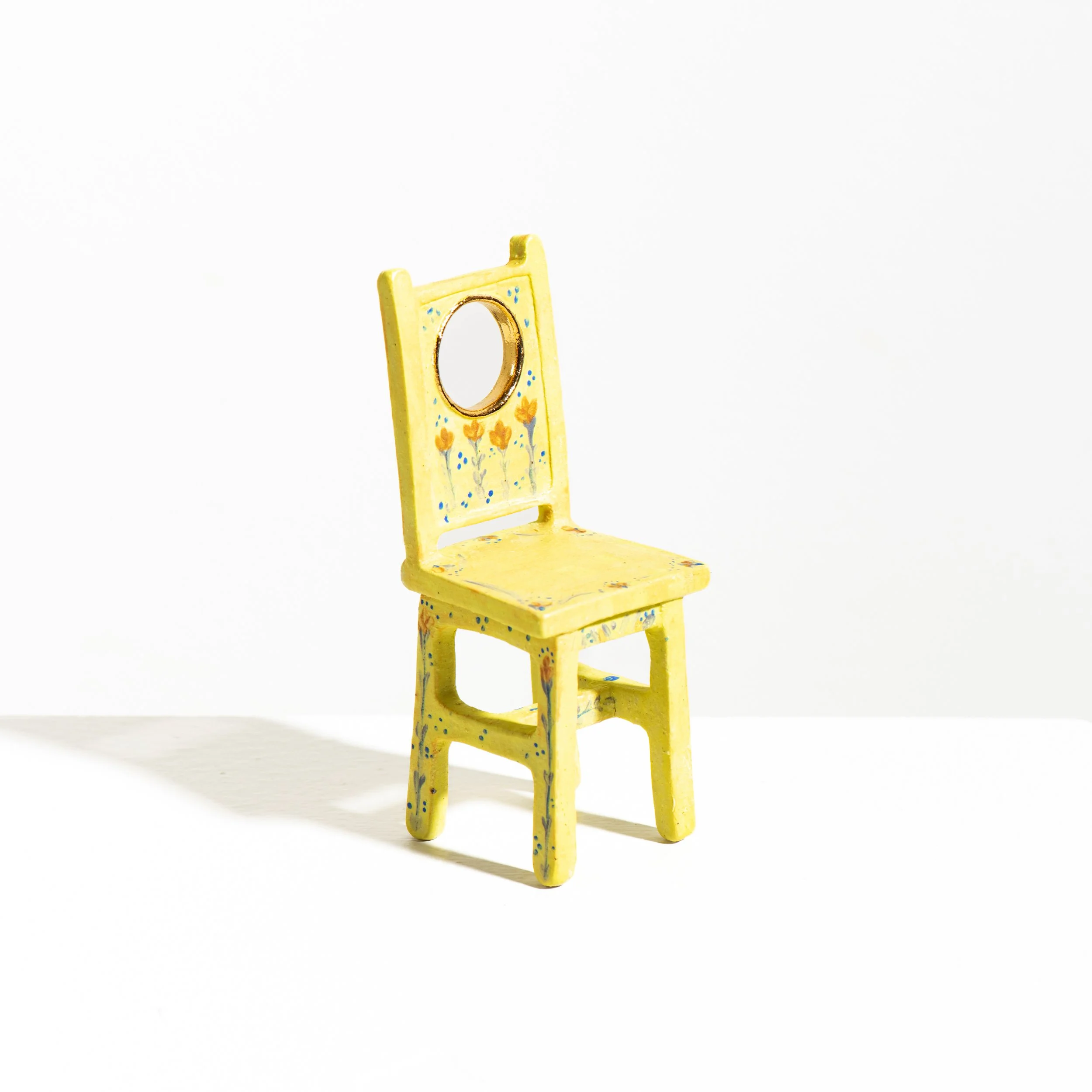 Each piece is hand-built in her home studio using stoneware clay and finished with unique and colourful glazes. Each chair carries its own distinct personality. Altering the scale of the chair strips it of its function, inviting contemplation on how we interact with, and place value on this familiar object.